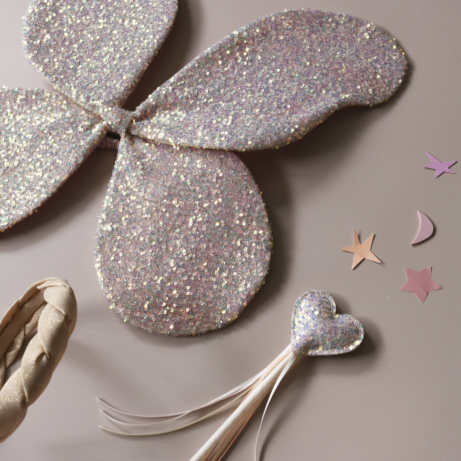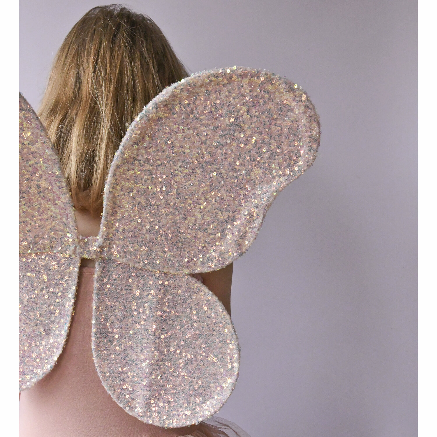 Sprinkle some fairy dust and watch their imaginations take flight! Adorned with pretty pink sequins and backed with soft satin, each set of wings also has satin covered elastic straps making them comfy and easy to wear. The perfect accessory for little dreamers and fairy chasers!
