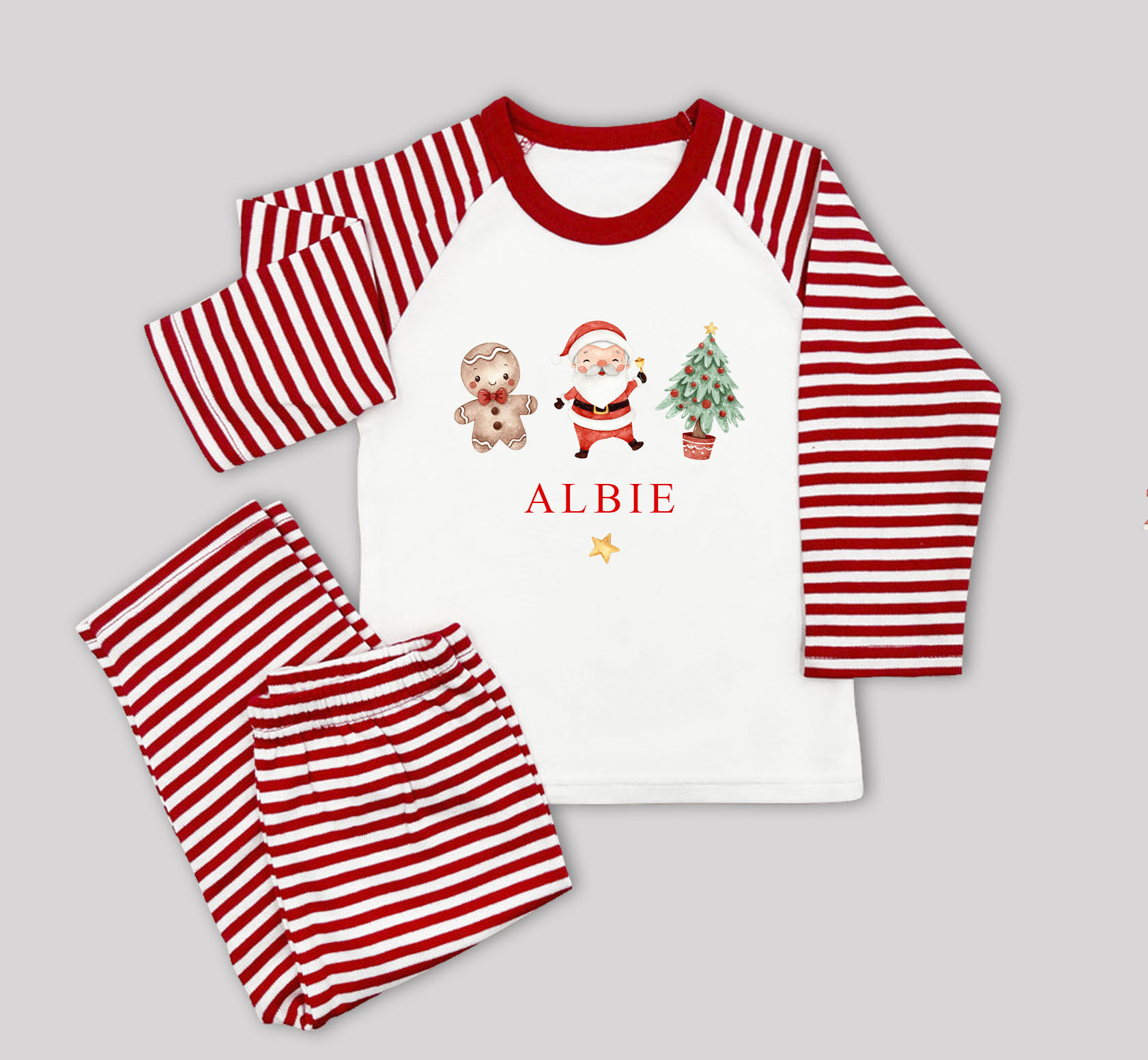 Make Christmas Eve even more magical with our adorable personalised Christmas pyjamas 🎄❤️ Featuring a festive trio — a jolly Santa, a cheeky gingerbread man, and a twinkling Christmas tree — these cosy pyjamas are perfect for little ones to snuggle up in while waiting for Santa to arrive!