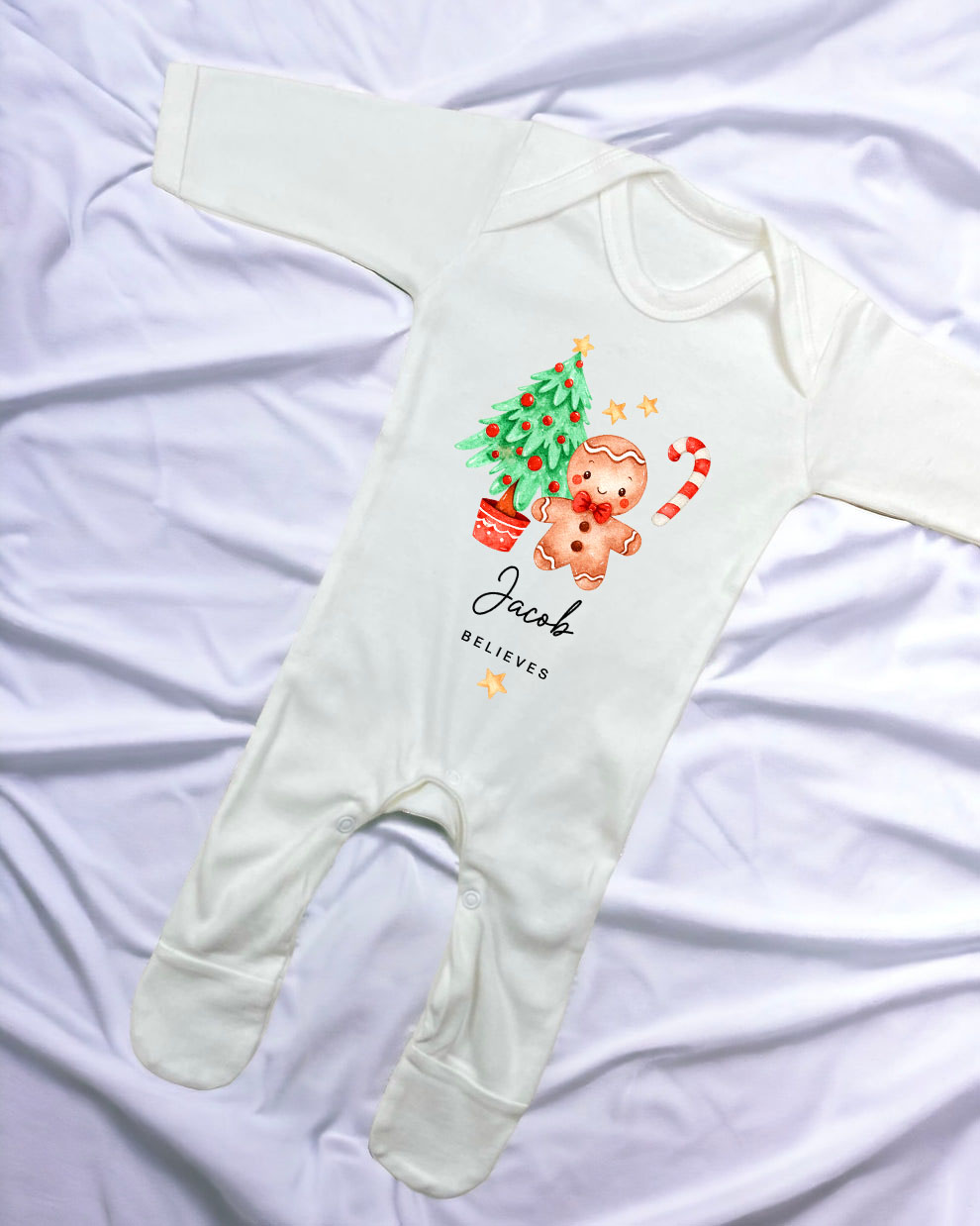 Personalised Gingerbread Man and Tree Christmas Sleep suit / Long Sleeve Baby grow